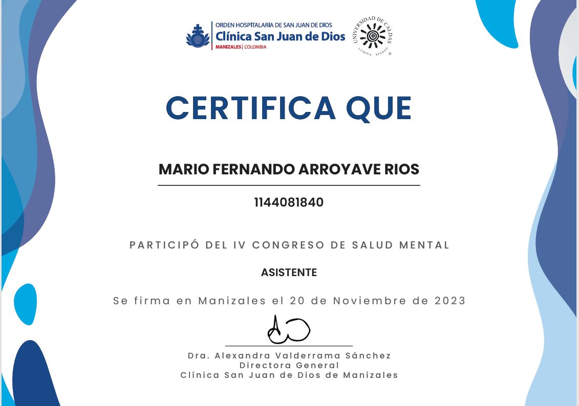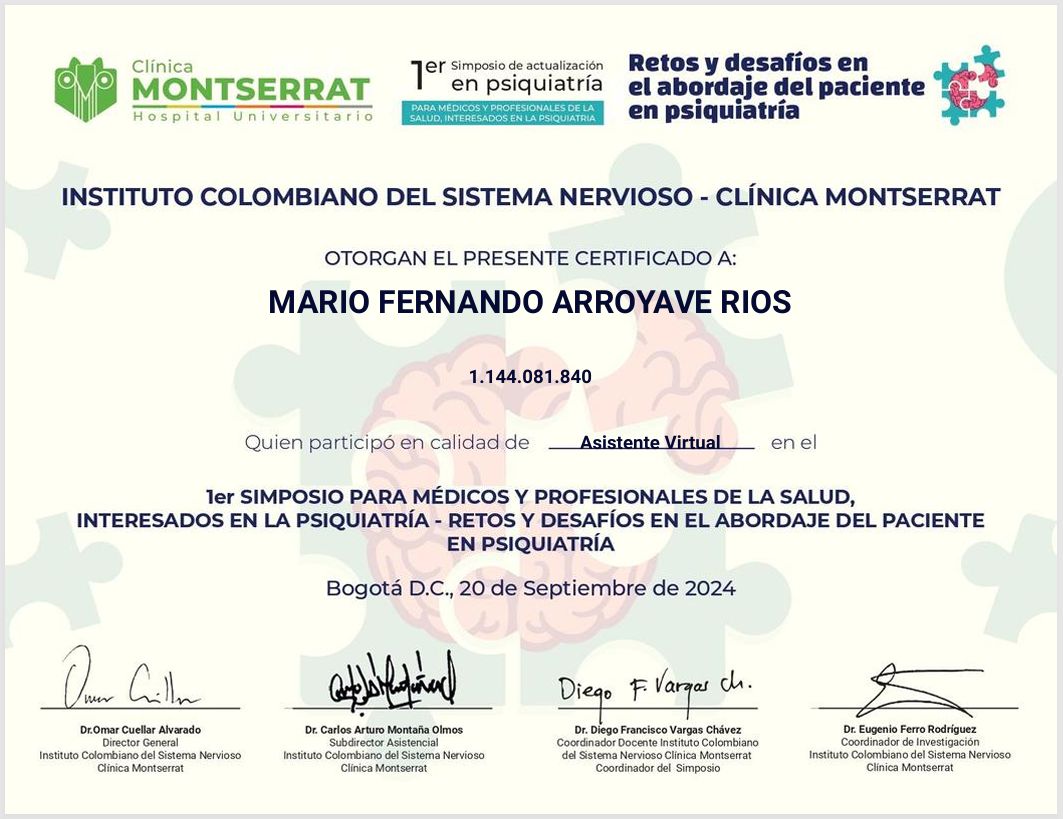 Soy el Dr. Mario Fernando Arroyave Ríos, psiquiatra en Cali, con experiencia en la evaluación psiquiátrica integral y el tratamiento individualizado de los trastornos mentales como la ansiedad, depresión, TOC, trastorno de pánico, trastorno bipolar y esquizofrenia.